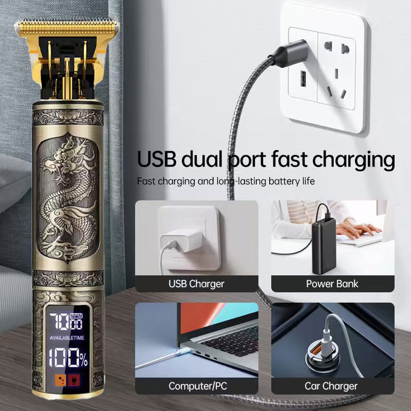 La KIMEI Vintage Pro™ combine un style rétro élégant avec la puissance des meilleures tondeuses professionnelles. Corps en métal gravé, finitions haut de gamme, prise en main agréable : elle attire l’œil autant qu’elle impressionne par ses performances.
